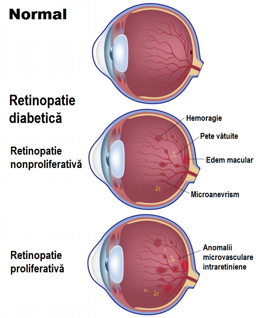 Retinopatia diabetică este o complicație a diabetului care afectează ochii. Este cauzată de deteriorarea vaselor de sânge din retină. La început, retinopatia diabetică nu provoacă simptome sau doar probleme ușoare ale vederii. În cele din urmă, poate provoca orbire. Retinopatia diabetică se poate dezvolta la persoanele care au diabet de tip 1 sau tip 2.