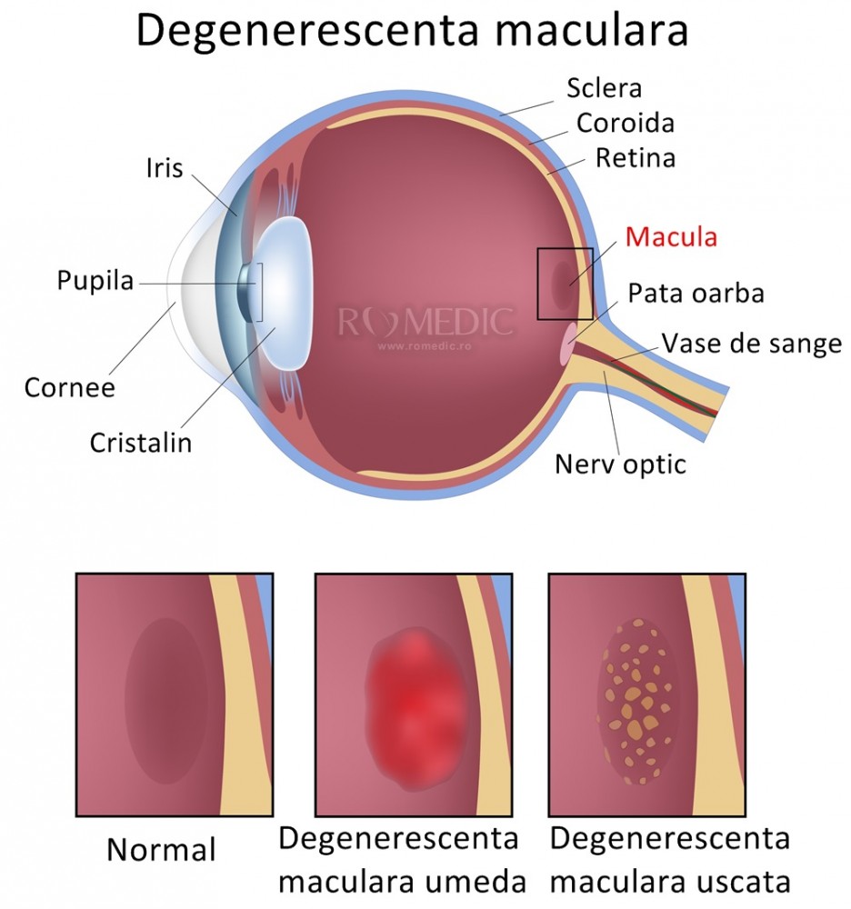 Degenerescența maculară este o boală a ochilor care se poate agrava în timp. Este cauza principală a pierderii vederii permanente, la persoanele de peste 60 de ani. Degenerescența maculară este o afecțiune care se dezvoltă atunci când mica porțiune centrală a retinei, numită maculă, se uzează. Retina este țesutul nervos sensibil la lumina din spatele ochiului.